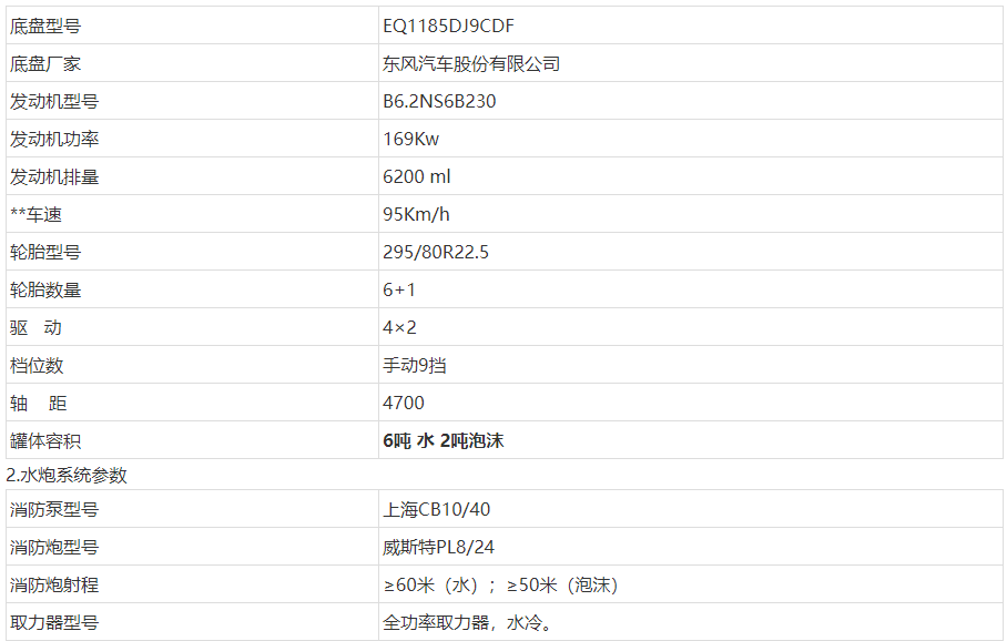 整车由消防员乘员室和车身两大部分组成,乘员室为单排改双排,可乘坐2+4人,该车为内藏罐结构,车身两侧为器材箱,中部为罐体,后部为泵房