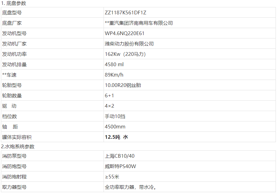 四驱消防供水车