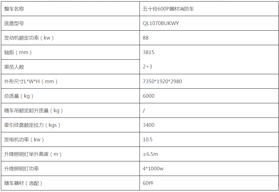器材箱内安装有大功率发电组,并可按需搭建各种消防抢险救援用器材框架,拖板