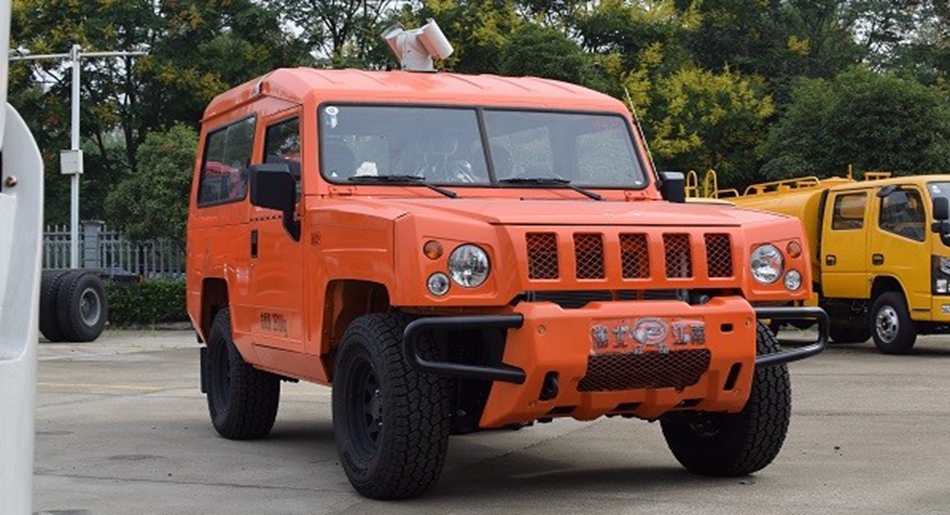 此车具有越野性能强、灵活机动、通过性大等优势,无论是在乡村小路、狭窄的街道、崎岖的山路、雨天湿滑路面或陡坡等复杂地形,只要有能让车身进出的空间就能快速、灵活地进行灭火救援,突发火灾险情时可搭载4人形成战斗小组消灭火源