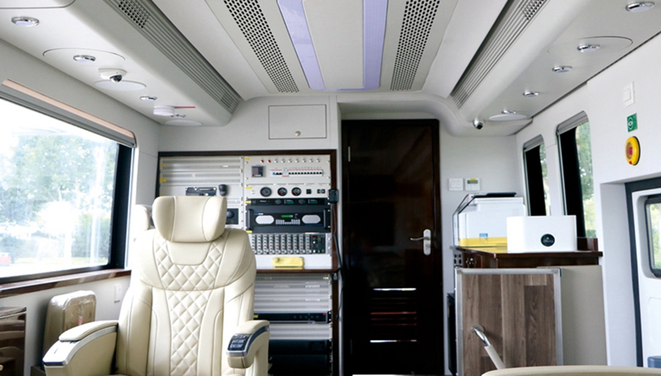 该通信指挥车集成卫星、5G公网、超短波通信、微波通信、LTE专网通信、MESH通信等通信功能,同时集成音视频采集、调度及各种会议保障设备。