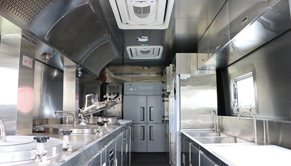 炊事设备采用食品级304不锈钢,安全环保。 舱体两侧可展开,可适用于不同季节的使用需求