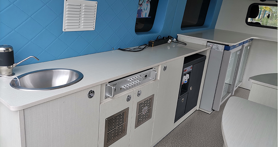 配备广播宣传系统(功放机、防水喇叭、无线麦克风、DVD播放机)、流动服务设施(木质服务工作台、折叠写字板、对讲机系统),更好地为民服务。