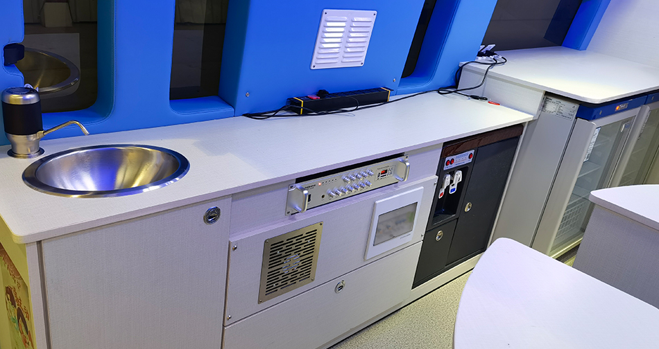 配有UPS电源系统(功率2000W,6只65AH蓄电池)、市电接入系统、车内照明灯、漏电保护系统等,为现场持续提供电力支持。