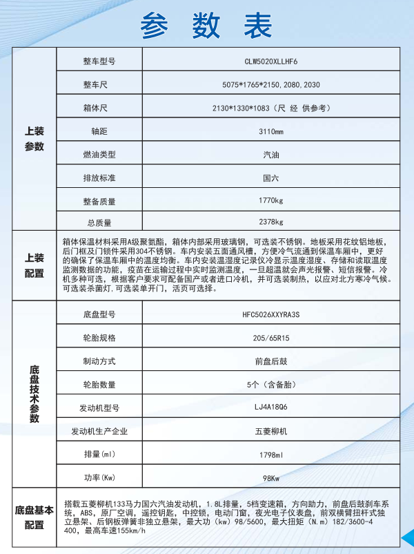箱体保温材料采用A级聚氨酯,箱体内部采用玻璃钢,可选装不锈钢,地板采用花纹铝地板,后门框及门锁件采用304不锈钢。