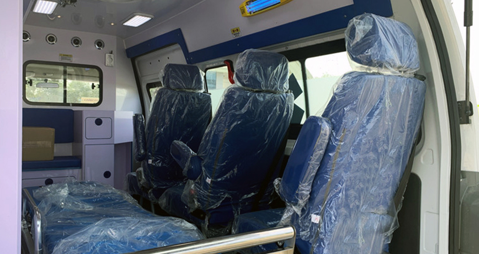 医疗舱右侧独立座椅,可调扶手,方便医护人员及陪护人员乘坐,营造舒适环境。