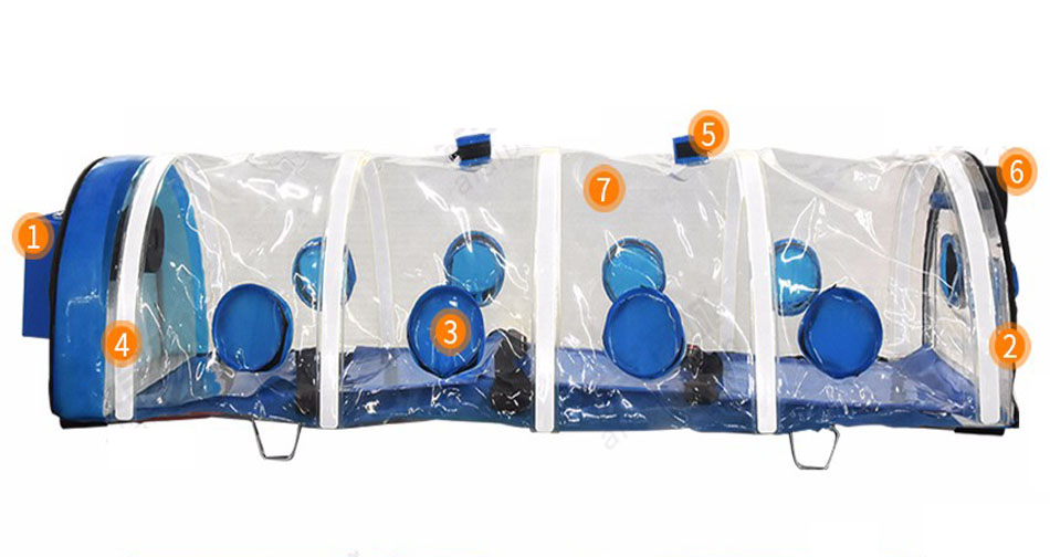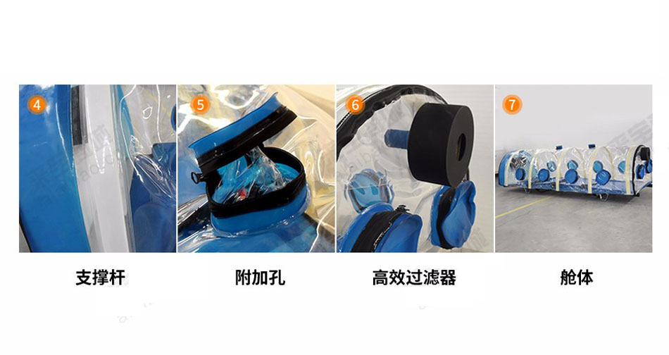 用于烈性呼吸道传染病员的隔离运送,防止在传染病员转运过程中,污染沿途环境,导致病原体扩散,可有效降低医护人员感染率。